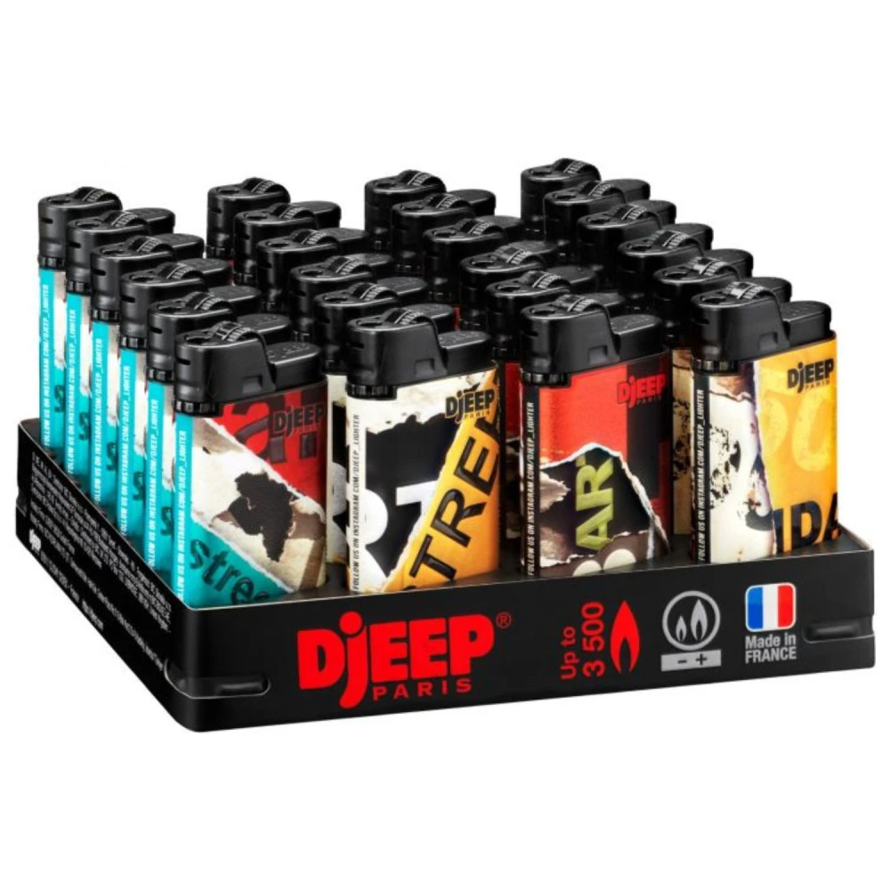 Les briquets Djeep possèdent une silhouette originale. Large et fin, ces briquets premium sont fabriqués en France. Découvrez une plaquette de 24 briquets assortis de la collection « Ripped Paper », avec des designs de papiers déstructurés. Environ 6 x 3.5 cm, décors uniques grâce à une combinaison de matières avec des parties holographiques